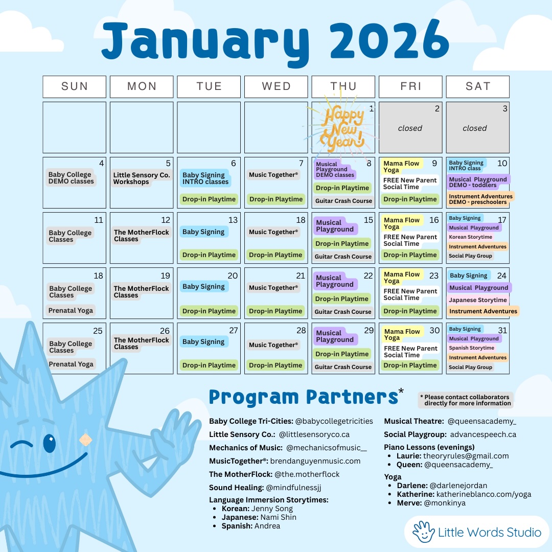 Little Words Studio is a cozy community space where little ones explore language, music, and movement through engaging classes and playful experiences. This is a place where little ones build meaningful connections in a fun and joyful environment.