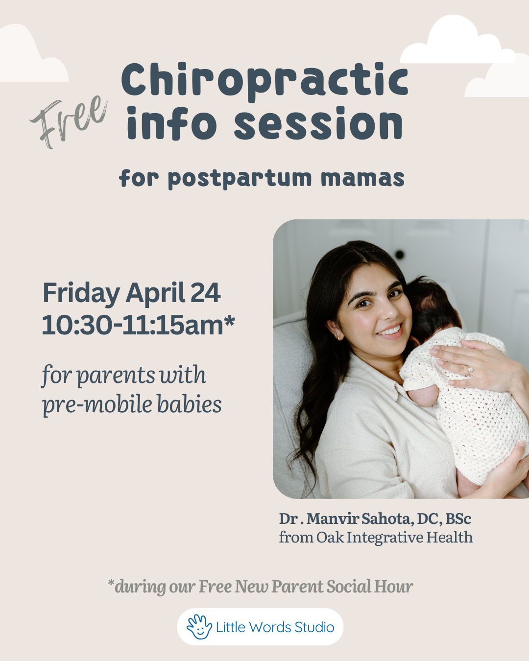 Dr. Manvir Sahota is a perinatal chiropractor and Tri-Cities mom who has been practicing since 2018. She loves supporting families through pregnancy, postpartum, and the busy early years of raising young children.