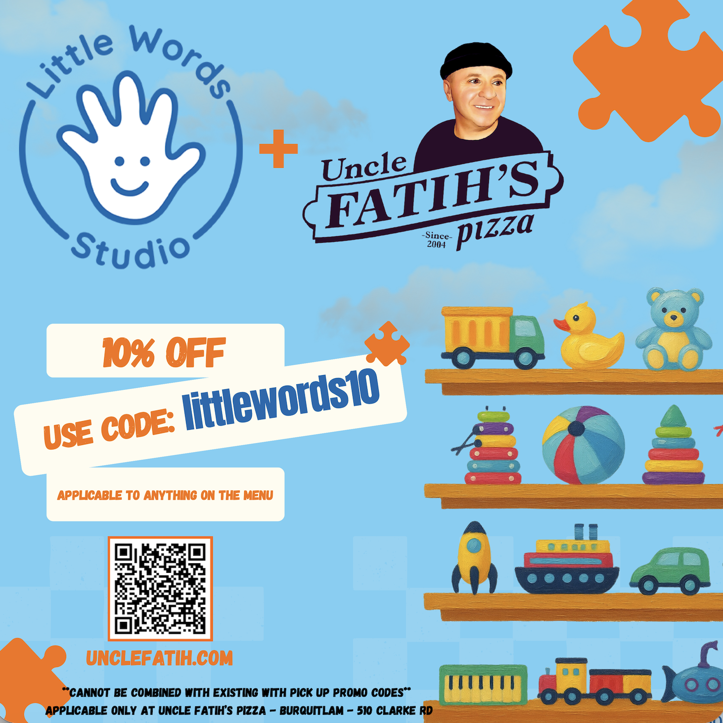 Uncle Fatih's Pizza Burquitlam has generously offered a 10% discount to all Little Words Studio families!