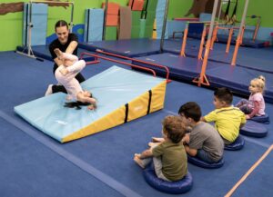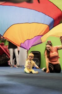 I recognized through a job that I had fresh out of high school, at a place called the Little Gym, that gymnastics as a foundational movement experience for really young babies and kids had so many benefits. Even as a young person, with no kids yet, I saw first-hand the benefits and the non-skill ones too- which impressed me even more. I knew one day I wanted to develop a program like that and serve a community of parents! And once I had my own kids, I had no doubts that I could do this successfully!